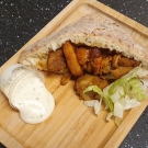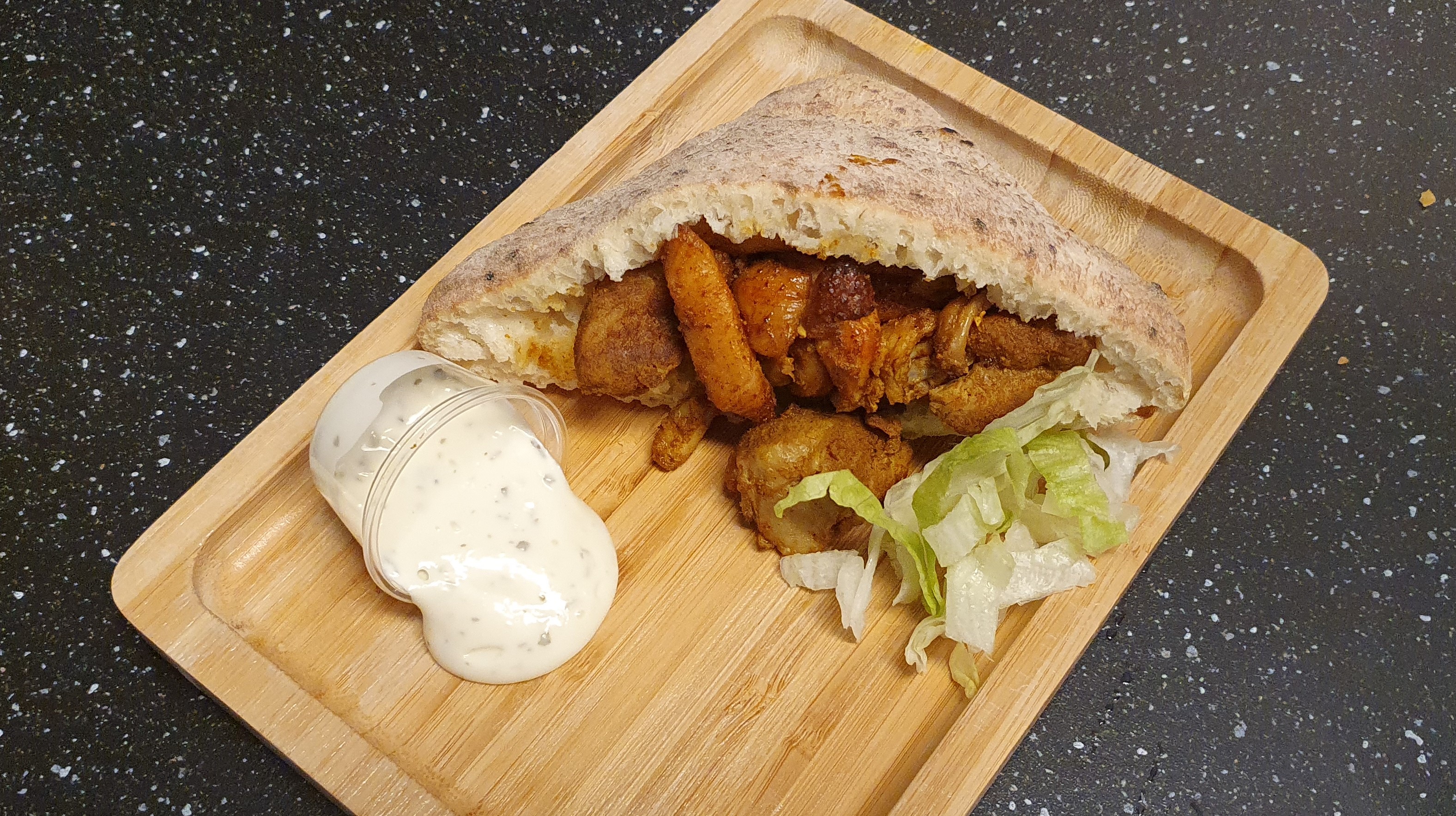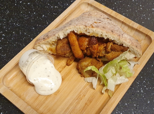 Met een lekker broodje, sla, malse kip shoarma en knoflooksaus